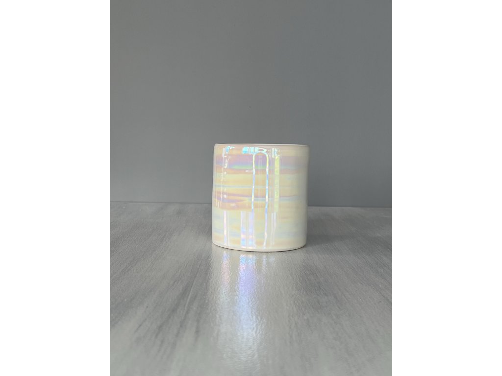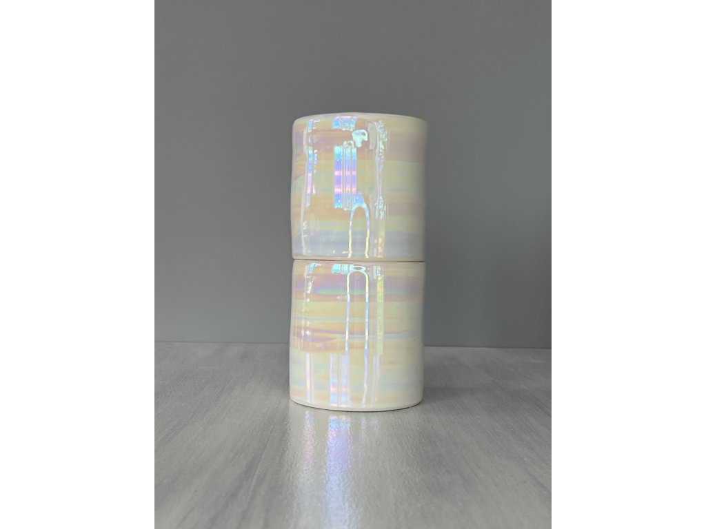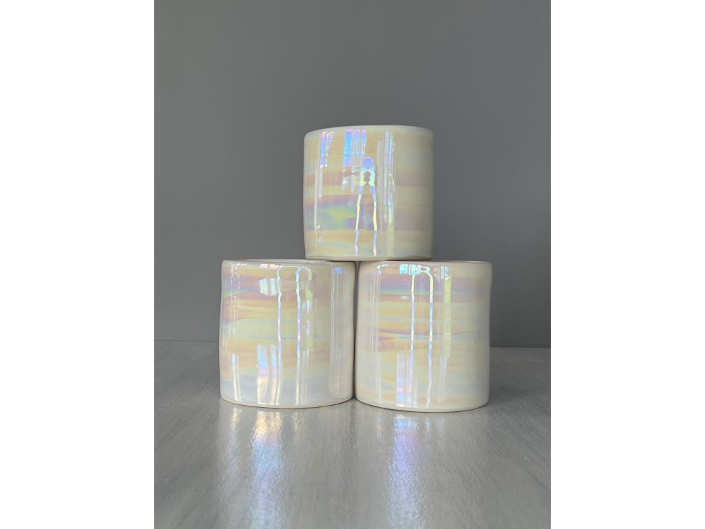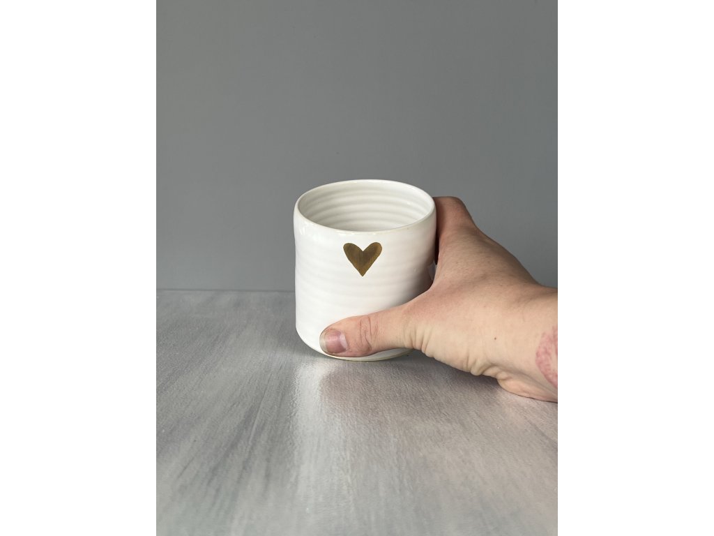 Na kruhu točený keramický kalíšek. Všechny jsou glazované, některé s vrstvou perleti, některé malované 24kt zlatem. Ideální na všechno - limču, kávu, drinček, pastelky, zubní kartáčky, kytičku,..