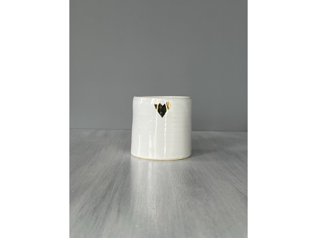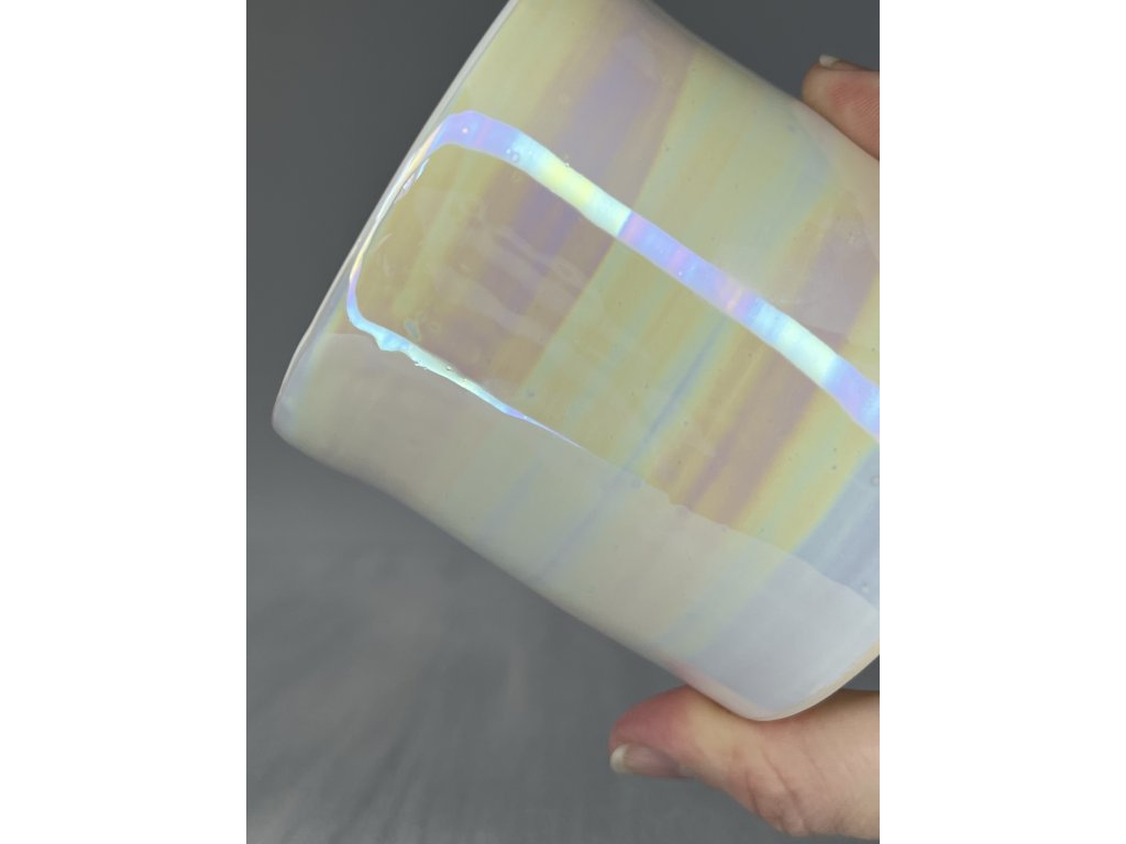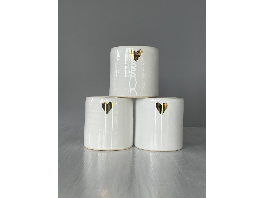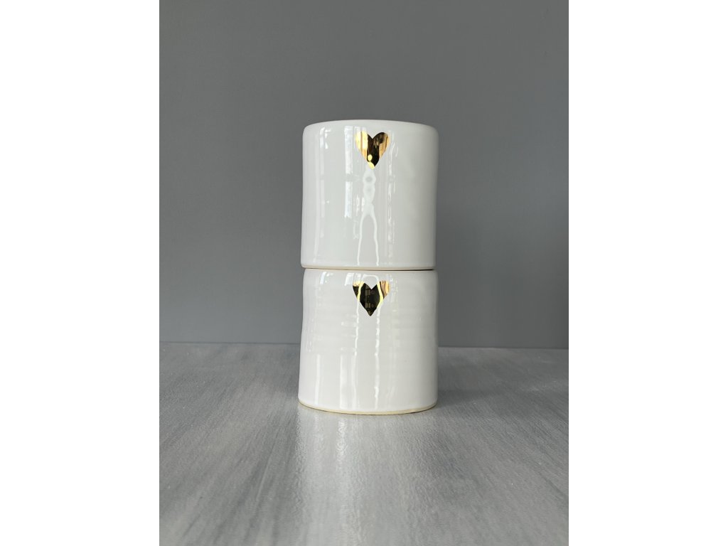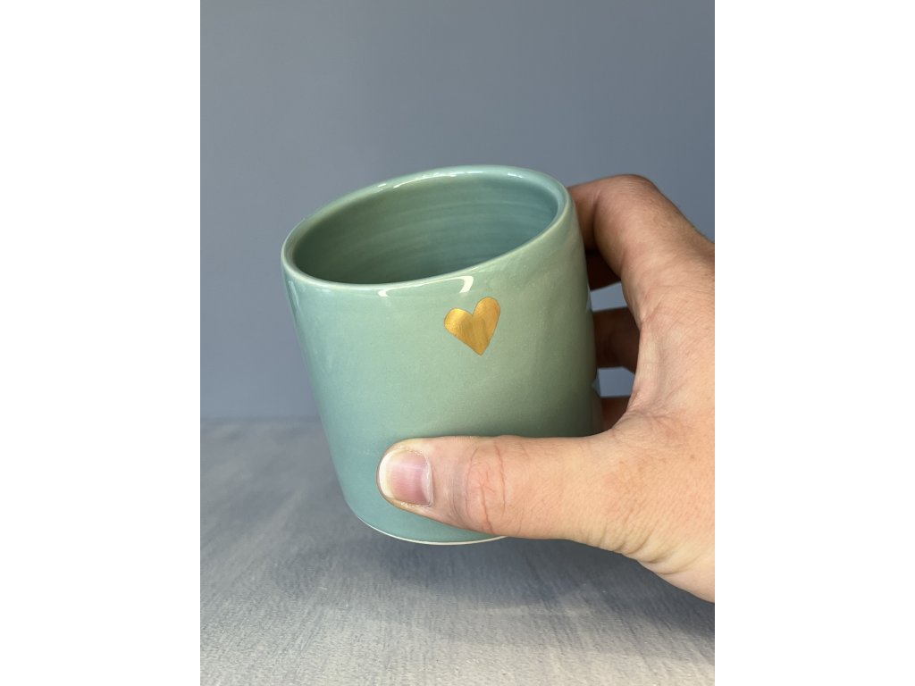 Na kruhu točený keramický kalíšek. Všechny jsou glazované, některé s vrstvou perleti, některé malované 24kt zlatem. Ideální na všechno - limču, kávu, drinček, pastelky, zubní kartáčky, kytičku,..
