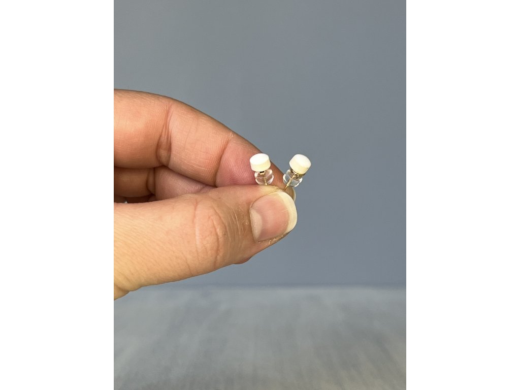 Minimalistické náušničky ve tvaru lentilky, v bílé glazuře, některé malované 24kt zlatem.