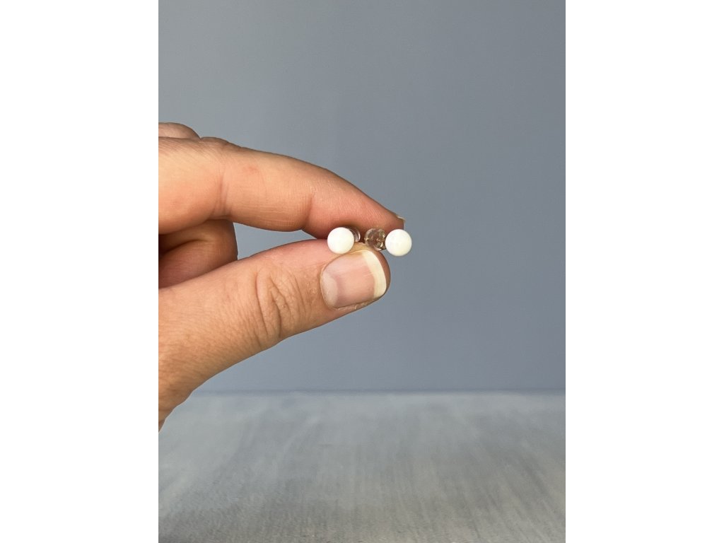 Minimalistické náušničky ve tvaru perly, v bílé glazuře, některé malované 24kt zlatem.